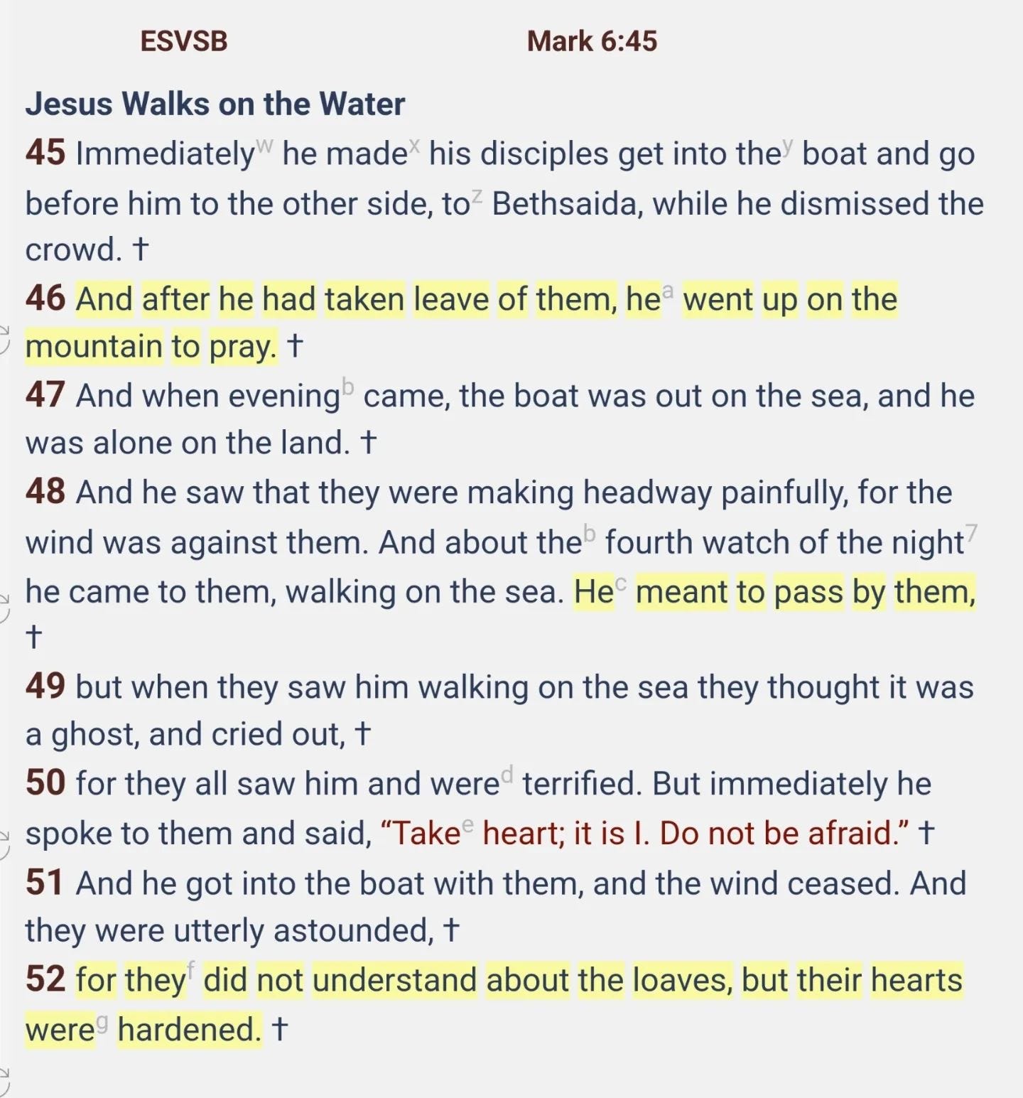 “For they did not understand about the loaves, but their hearts were hardened.” (v. 52)